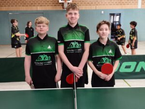 Jugend 13 des TTV wurde Meister der Jugend-13-Bezirksoberliga 1. Von links: Ben Neufeld, Fiete Kamp, Janne Laske. Auf dem Foto fehlt Marlon Seifert